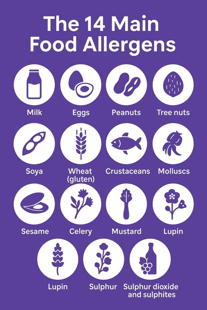 There are 14 key food allergens, but in reality, we can suffer allergies to lots of different things, and that’s why we provide comprehensive tests. Below, you can find a neat summary of the main allergens and the foods they’re commonly found in.